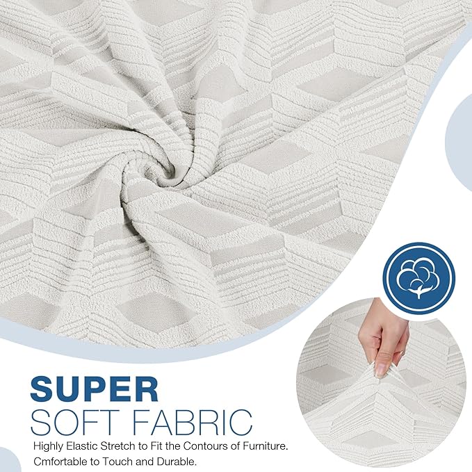 TAOCOCO Oversized Recliner Cover Stretch Recliner Chair Covers, Jacquard Reclining Chair Cover, Furniture Protector Sofa Slipcovers Couch Covers with Elastic Bottom for Kids, Pets(Cream White)