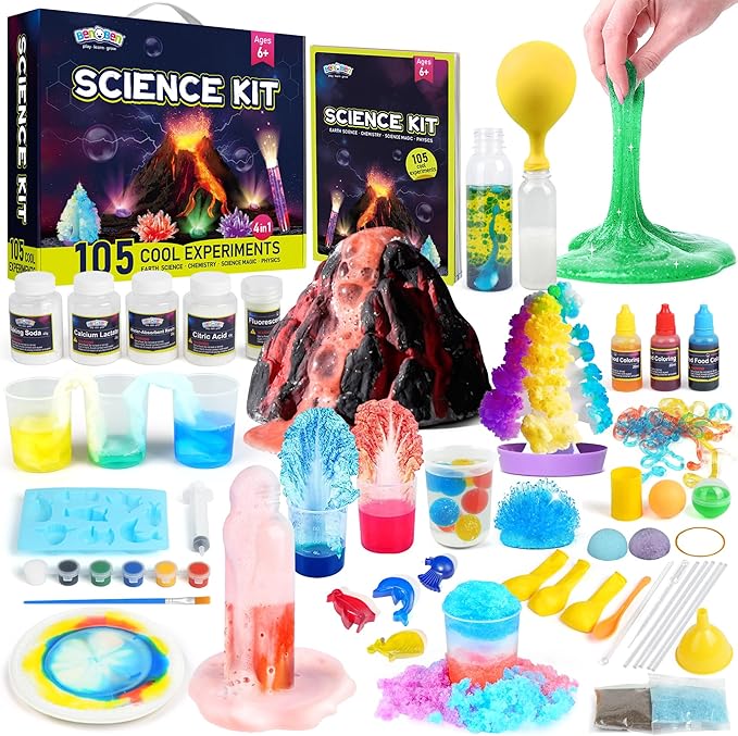 - 105 Cool Experiments for Kids: Our science kit for kids ages 8-12 covers earth science, chemistry, physics, science magic tricks and more topics, includes all different types of over 100 science experiments; Science toys have all the classic, popular and fun experiments like volcano erupting, crystal growing, geodes, water slime, soap making, pharaoh's snake, magic sand and many more stem projects; Keep your kids busy and learn science in a fun way!