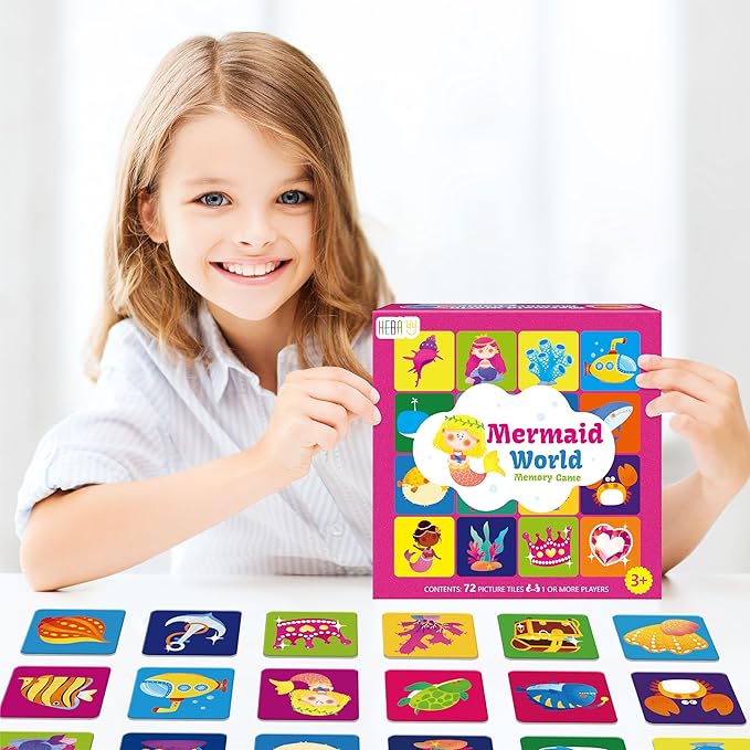 Hebayy 72 PCS Mermaid World Memory Matching Game, Marine World Matching Cards for Toddlers 36 Pairs Memory Cards Educational Toys for Preschool 4 5 6 Years Old