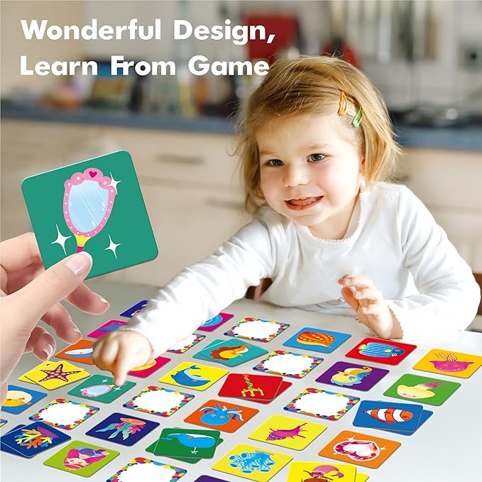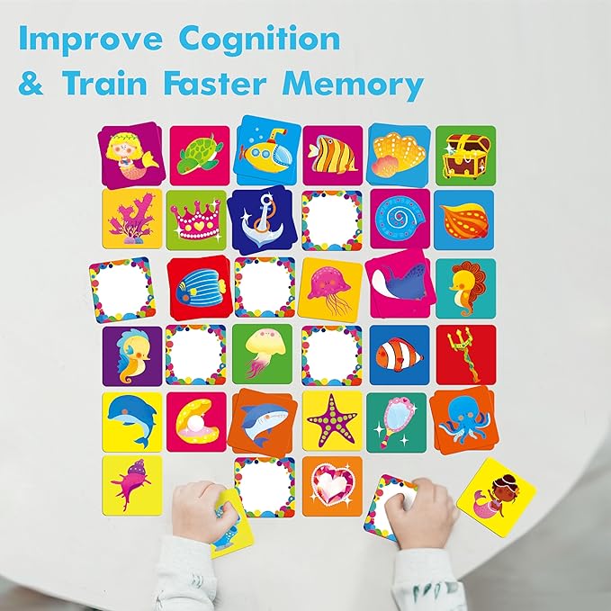 - Funniest Marine Theme Game: The game involves turning over cards and finding matching pairs, challenging children's memory and concentration abilities. Kids will get excited when they find the match themselves and it’s always fun to see who has the most matches. It is a nicely made memory game, not only suitable for kids age 3-5 up, but popular in adults, meaningful and enjoyable.