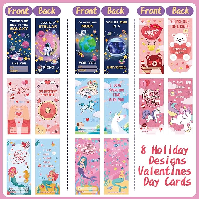 - 🎨 Exquisite Valentine's Day Cards for kids: This valentine cards for kids classroom is designed with 8 different adorable patterns with heartwarming and humorous words, full of Valentine's Day sweet atmosphere. Write the name on the "To" and "From" and share the "Love" with your friends, it's the best expression of friendship, care, appreciation and fun!