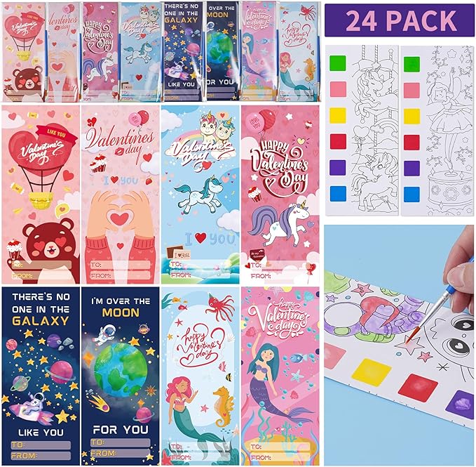 - 🎨 Valentine's Day Gift Value Set: Valentine's Day gift set for kids contains 72 watercolor paintings, 24 Valentine's Day cards, 24 paint brushes and 24 clear bags. Total 144 sheets (3 watercolor books, 1 Valentine's Day card, 1 paint brushes per bag). This would be an ideal school exchange gift for kids for Valentine's Day!