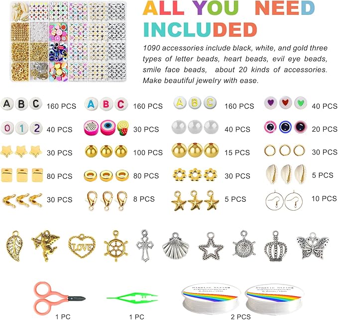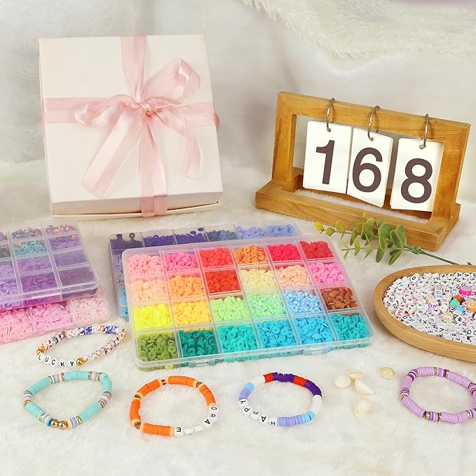 - Gifts for Teen Girls: want to prepare a special birthday gift for a girl or a holiday gift such as Christmas? Don't hesitate to choose this flat beads for bracelets making with a beautiful gift box, containing all the tools and materials needed for DIY bracelets, necklaces and other jewelry making; children can make friendship bracelets with their friends and spell out their names with colorful beads; whether it's a little girl aged 6-9 years old or a teenage girl aged 10-16 years old, this adorable clay beads bracelet making kit can bring them endless Joy