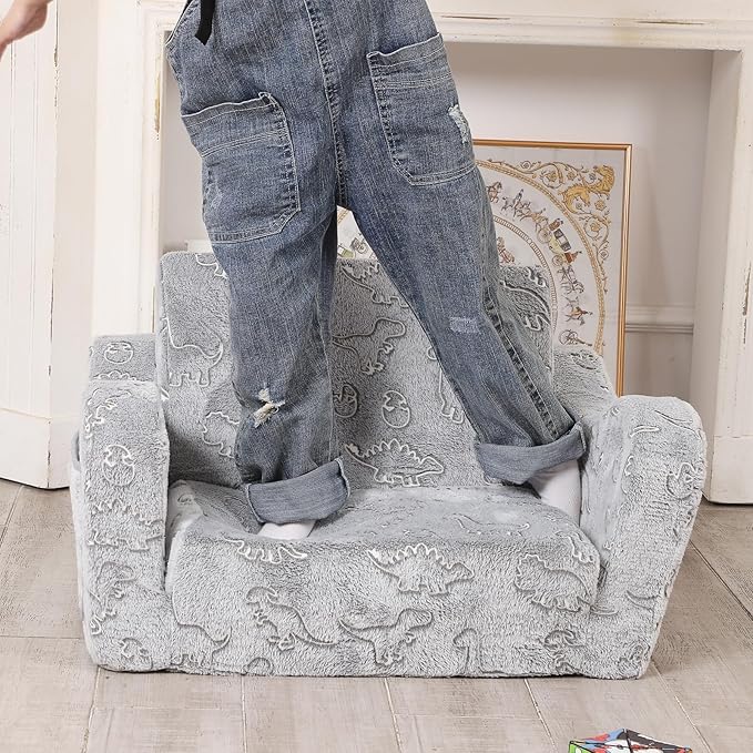 Dinosaur Glow in The Dark Toddler Couch, 2-in-1 Toddler Soft Couch Fold Out with Star Pillow, Convertible Sofa to Lounger for Girls and Boys, 1-Seat