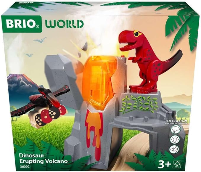 - Create epic prehistoric adventures for your BRIO World train sets with the 36092 Dinosaur Erupting Volcano playset.