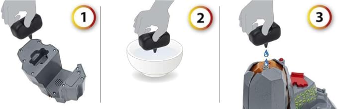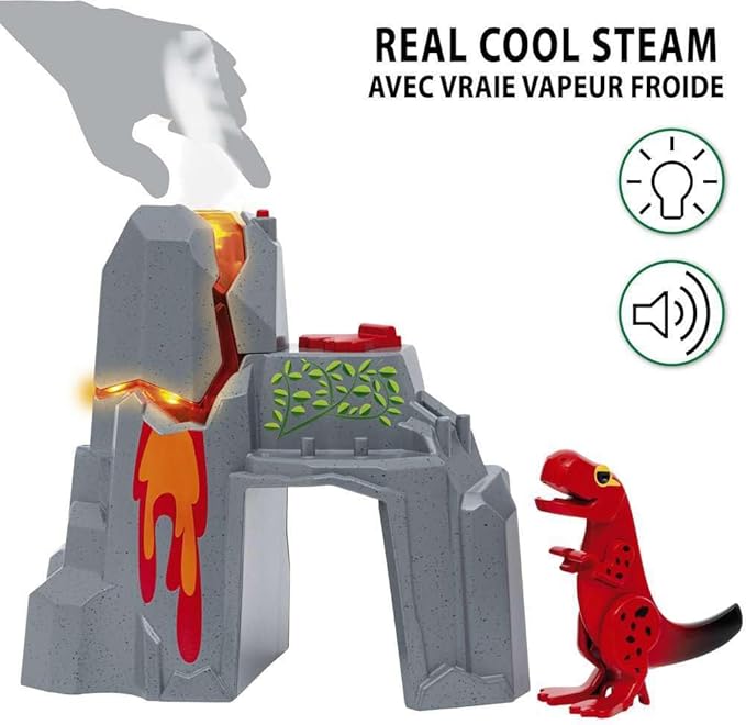 - Awaken the volcano and watch it explode – use the buttons to activate glowing lava lights, volcano sounds, safe-to-touch steam effects and explode the peak.