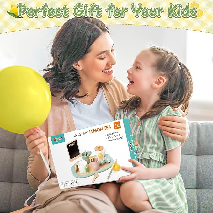 - FANTASTIC TEA SET: How to have a good and fun afternoon tea with your children? Come and try our tea set! Our products include 2 lemon cups, 1 teapot, 1 blackboard, 2 lemons that can be cut, lemon slices, a jar of sugar, juicer, 2 small cups, spoon and knife, bring this tea set, give your children a different afternoon tea experience