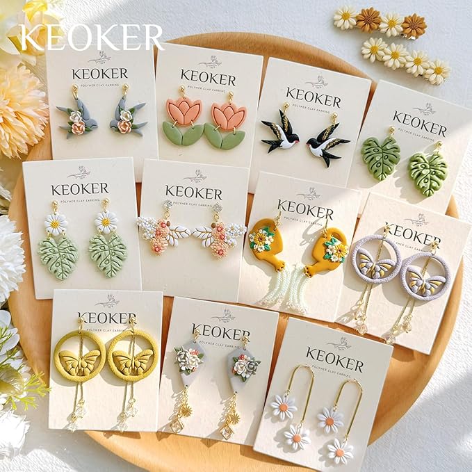 KEOKER Spring Polymer Clay Cutters - 11 Cutters for Polymer Clay Earrings, Flower Clay Earring Cutters
