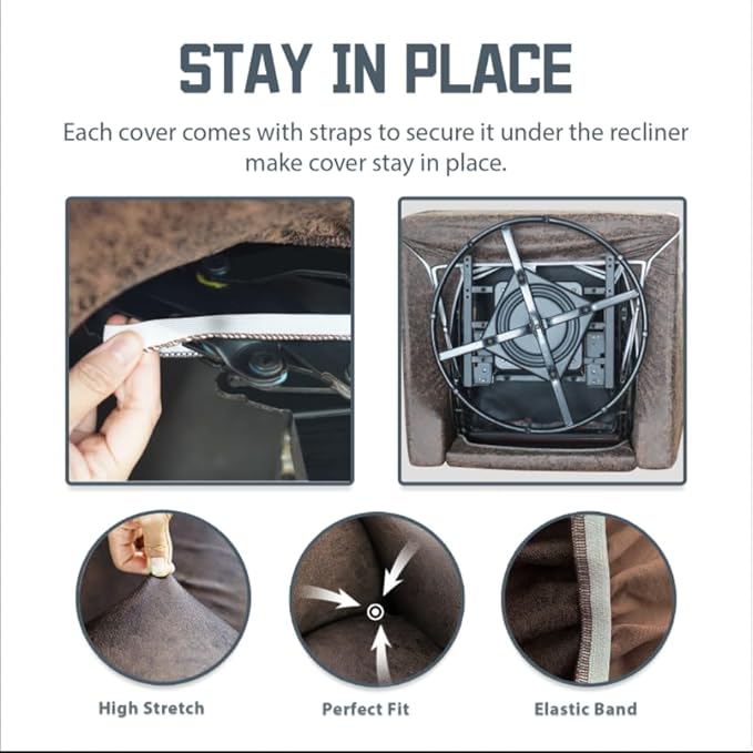 - NON SLIP: The premium elastic edges and fixed ropes ensures that our recliner covers stay in place, so you don't have to worry about messes caused by kids and pets when using reclining chair