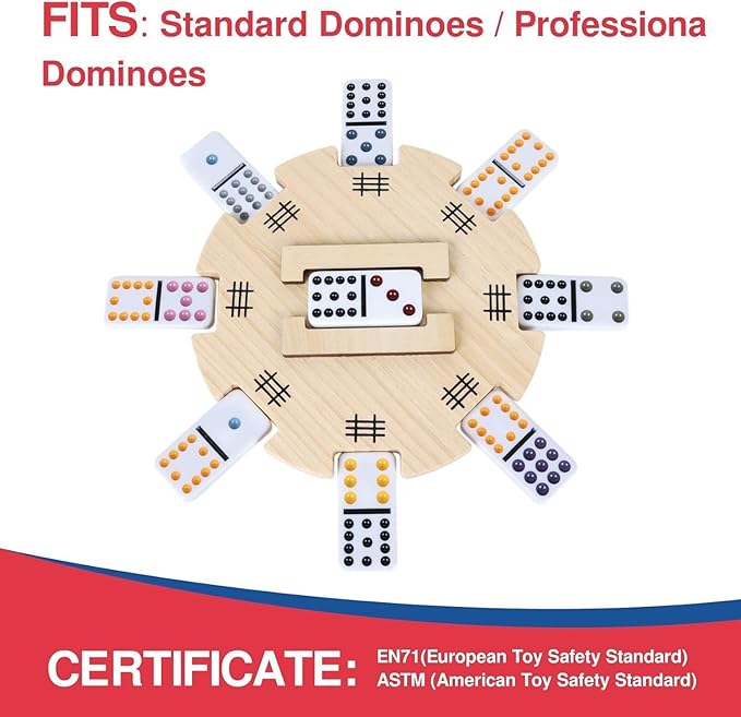 - 【Safety and Funny】This dominoes accessories set is made from natural material, which is tough and dense, well-constructed and feels smooth.Every part have been carefully crafted with no sharp edges or harmful substances.It is completely safe and certified by ASTM,FCS,CE and EN71.Perfect game for beginners, experts, and the whole family!Recommended for 2-8 players, for adults & kids age 3+