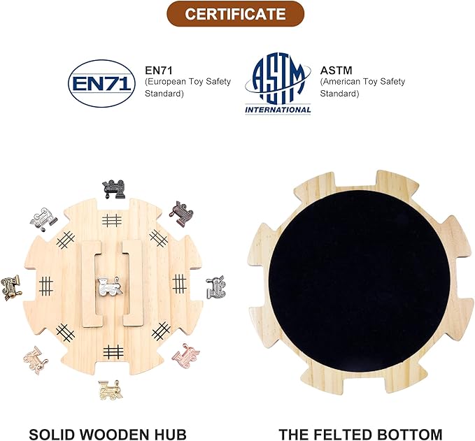 - 【Premium Pine Wooden Hub】These Dominoes accessories come with a wonderful wooden hub made from natural pine. The hub features a soft nonwoven cloth at the bottom, providing anti-slippery protection for your table. The flat surface ensures that your train markers stay securely in place during gameplay.Whatever as a supplement to Chicken Foot, Mexican Train games or other board games. that is really a wonderful choice!