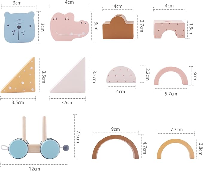 - Educational benefits - The stacking train set allows kids to build, stack, and roll to helps develop imagination during young children's free play and fine motor skills. Building blocks of various shapes and colors, with basic lines and patterns that allow children to identify and distinguish shapes, colors, etc.