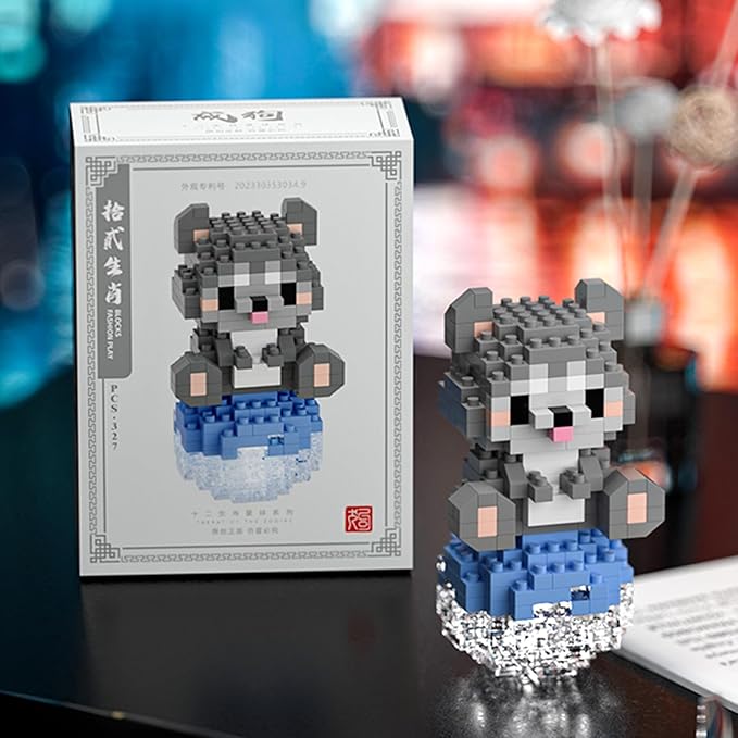 - 12 Mini Animals Building Blocks Set - 12 animals mini blocks set, including mouse, cow, tiger, rabbit, dragon, snake, horse, sheep, monkey, rooster, dog, pig.