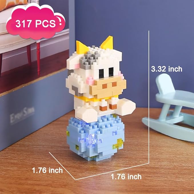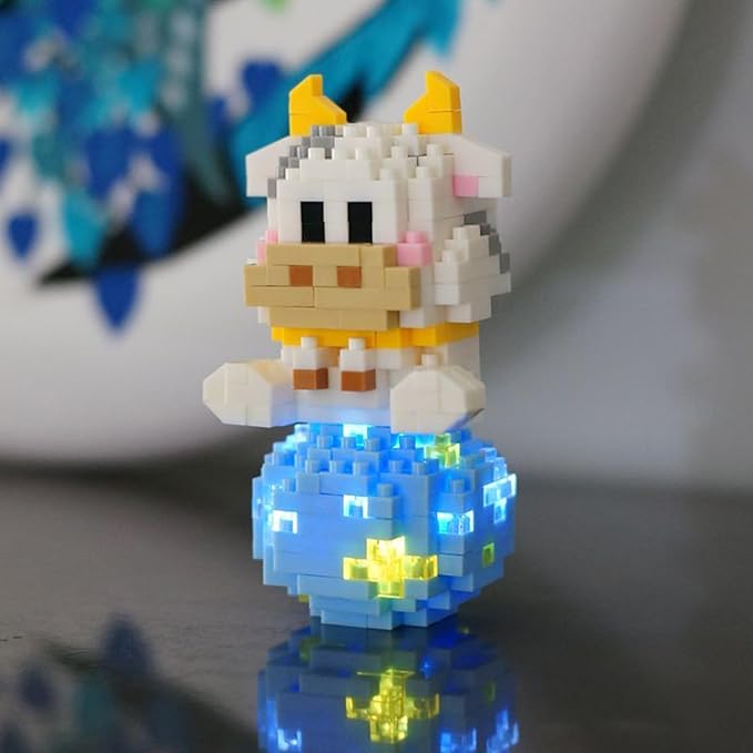 12 Mini Animals Building Blocks Sets Building Block Party Favor for Kids Small Zodiac Animals Pets Horse Dog Monkey Tiger Rabbit Dragon STEM Educational Toys for Boys Girls(Cattle)