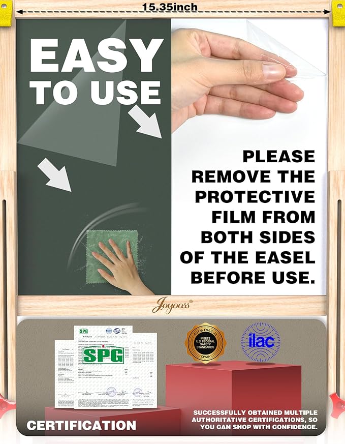 • 【SAFETY MATERIAL】The Art Easel for Kids Easel is made of high-quality pine wood, ensuring stability and durability, and can withstand years of play. The kids art easel's smooth wood without burrs and rounded corners are safe for infants. The Toddler Art Easel is a fixed accessory on each side of the easel to increase its stability.
