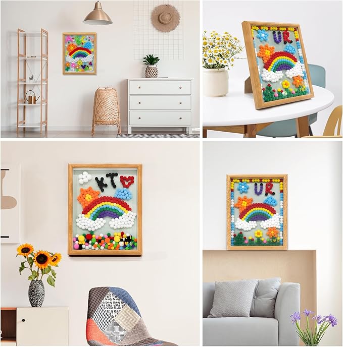 - Craft Supplies for Home Decor - A premium picture frame with glass is an excellent partner for pom pom paintings. Completed artworks can be placed within the provided frames and become part of your home decor. This pom pom painting art kit extends beyond the joy of creating art to beautifying homes. It’s an ideal choice for both a fun and tidy art project at home or school.