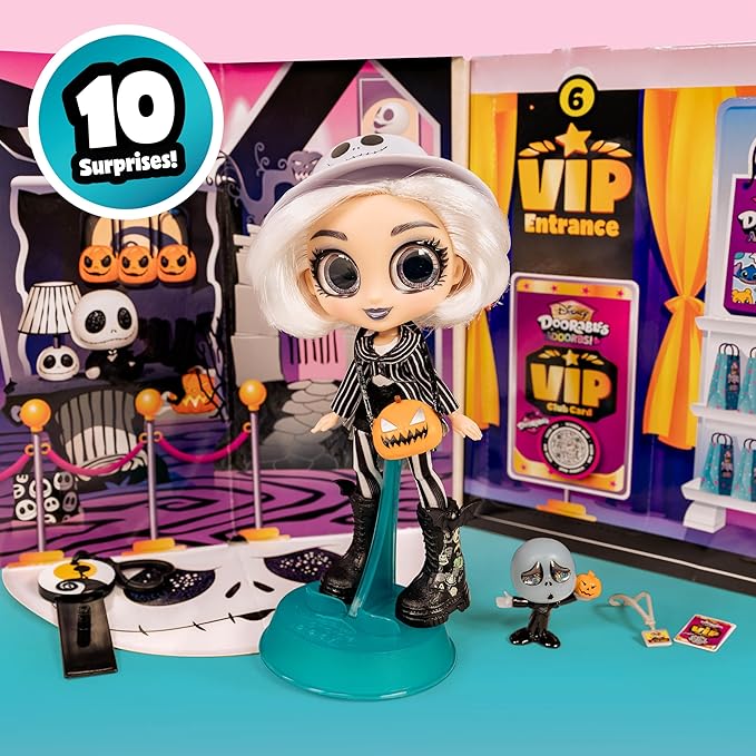 • Includes: ADOORBS doll, Doorables figure with attachable bag clip, Club Card, VIP card, convention lanyard, stand, 3 additional accessories unique to each doll, foldout package with play backdrops.