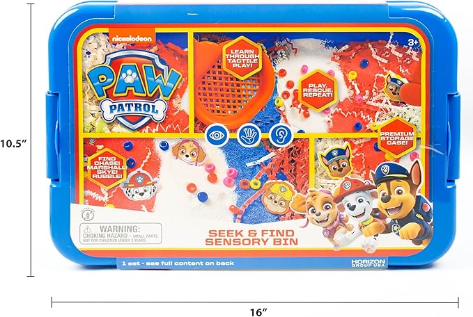 - DURABLE, PORTABLE, PAW-SOME: Designed to withstand the excitement of little hands, this travel-friendly sensory bin ensures Paw Patrol adventures can happen anywhere, from playdates to family trips, for endless screen-free entertainment.