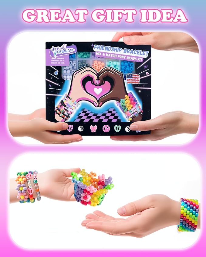 Deinduser Kandi Beads Kit, Pony Beads for Bracelet Making, Pony Beads Kit with Letter Beads, Peace Beads, Skull Beads, Heart Beads, Beads for Jewelry Making, Jewelry Making Kit for Adults&Kids