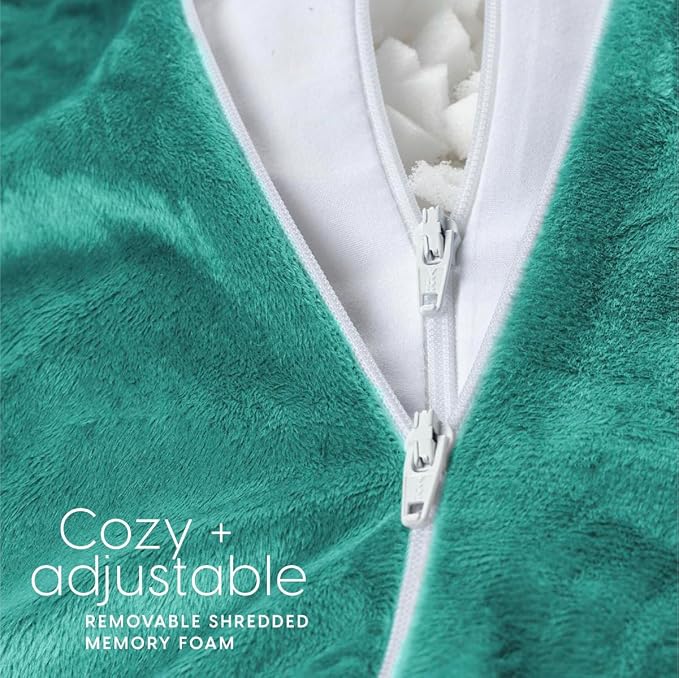 Milliard Reading Pillow with Shredded Memory Foam, Large Adult Backrest with Arms, Back Support for Sitting Up in Bed with Washable Cover (Sit up Pillow) Teal