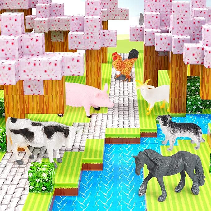 Magnetic Blocks 110PCS with 6 Animal Toys, Building Blocks Set, Toys for Boys & Girls Age 4-6,6-8, STEM Montessori Stacking Building Toys for Toddlers Kids 3+(Cherry & Animal)