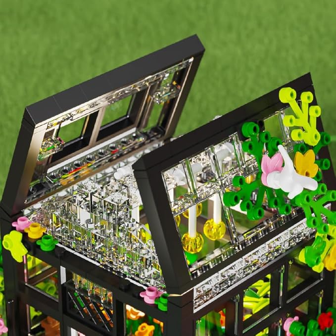 - There is a courtyard outside the greenhouse, complete with a coffee stand offering snacks and beverages, as well as tables and chairs for relaxation. Playful birds and friendly cats, a bicycle. Create a whimsical garden scene with this building blocks flower house set.
