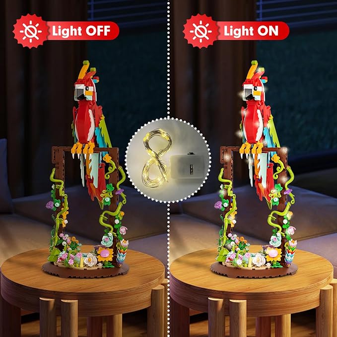 - Creative Design: This building block set features a creative design, combining flowers with parrots. The base is adorned with flowers, and the parrot and wings can rotate 360°. The flowers and parrot building sets make ideal gifts for Easter, Mother's/Father's Day, Christmas or birthdays, whether for children or friends