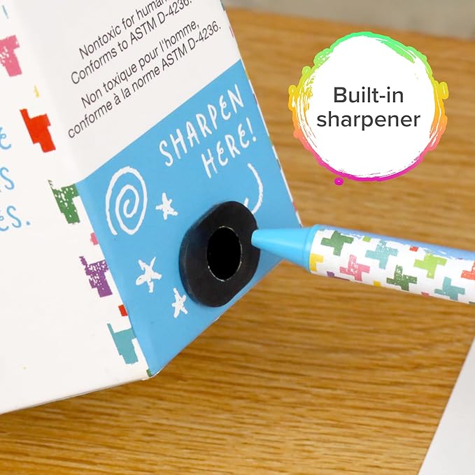 - Built-In Sharpener Case: Keep your crayons sharp and ready to go with the included case, featuring a convenient built-in sharpener.
