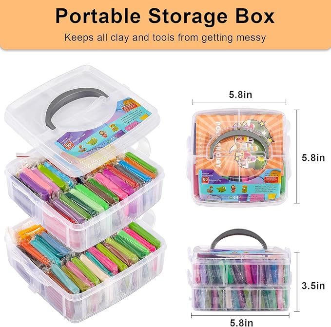 - 60 Vibrant Colors: Our modeling clay set includes 60 different vibrant colors,0.7oz/color, allowing kids to unleash their creativity and create endless artistic masterpieces.