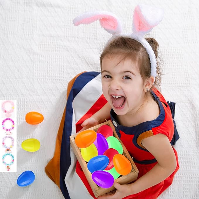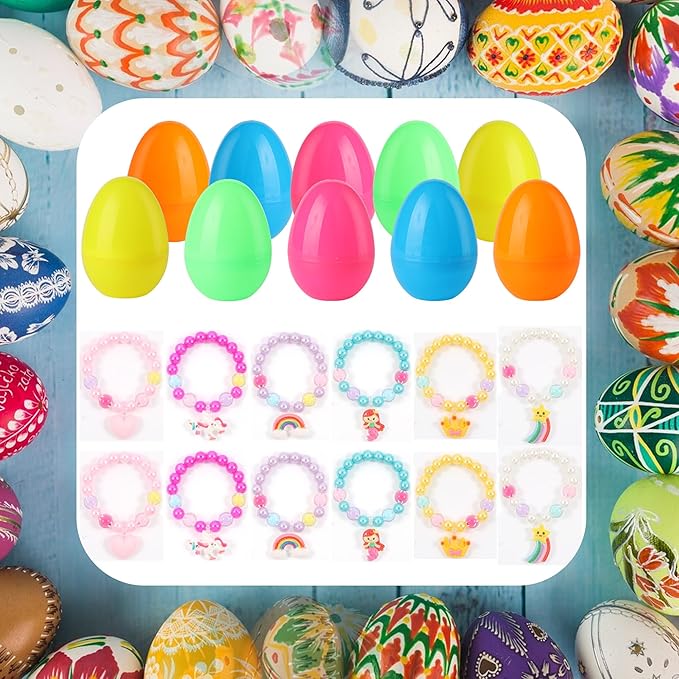 xutengy 12Pcs Easter Egg Fillers Beaded Bracelets,Surprise Easter Egg Toy for Boys Girls Toddlers Easter Basket Stuffers Gifts Party Favors Gifts