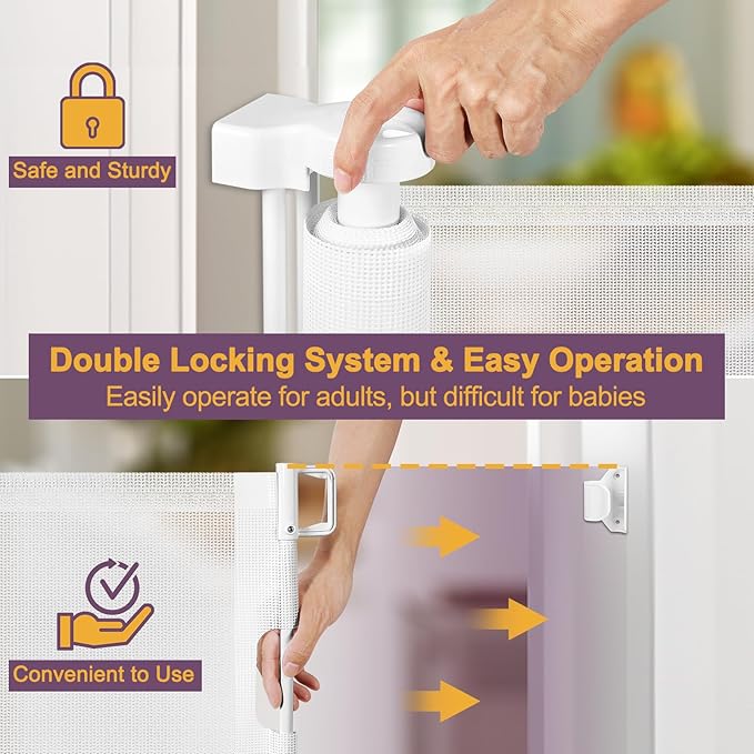 - 42" Extra Tall Retractable Gates: This extra tall baby gate is 42 inches tall and taller than other retractable baby gates to prevent your babies and dogs from jumping or climbing over it.