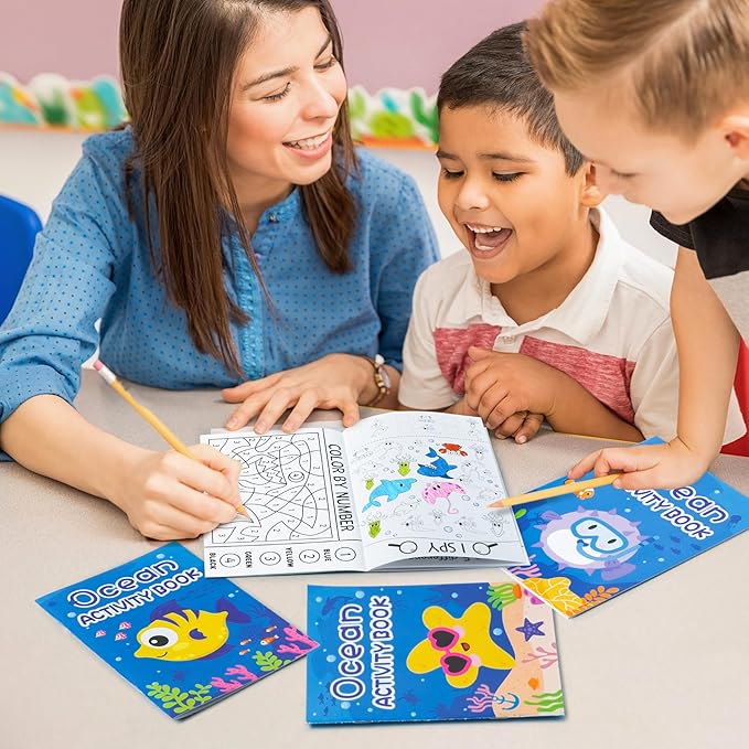 BZaber Ocean Activity Coloring Books - 24Pcs Under The Sea Including Turtle Jellyfish Starfish Shark Clownfish DIY Art Drawing Pattern Under The Sea Birthday Party Favors Home School Supply for Kids