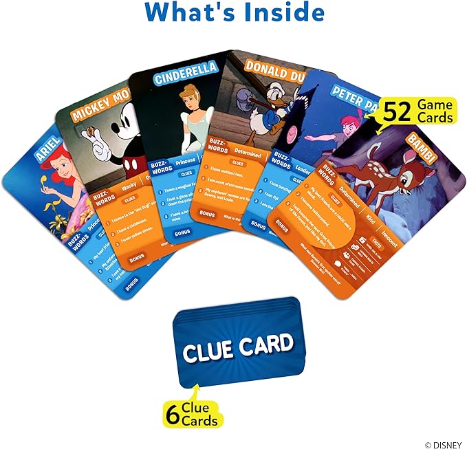- FUN FAMILY GAME: Exciting for all ages 6 and up! Guess in 10 Disney is the perfect addition to your friends and family game night, promoting fun and interaction.
