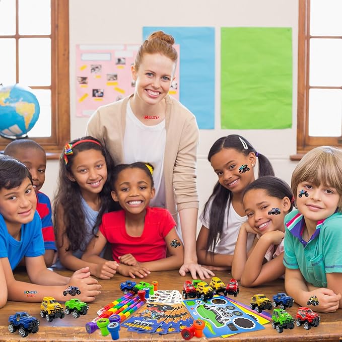 - Diverse Usage Scenarios:monster truck school DIY activity set is suitable for gift exchange, family gatherings, children's birthday parties,monster truck party,car party, race car party,classroom parties,gift bag filling, classroom prizes and daily use, classroom party set for kids to meet any of your usage needs