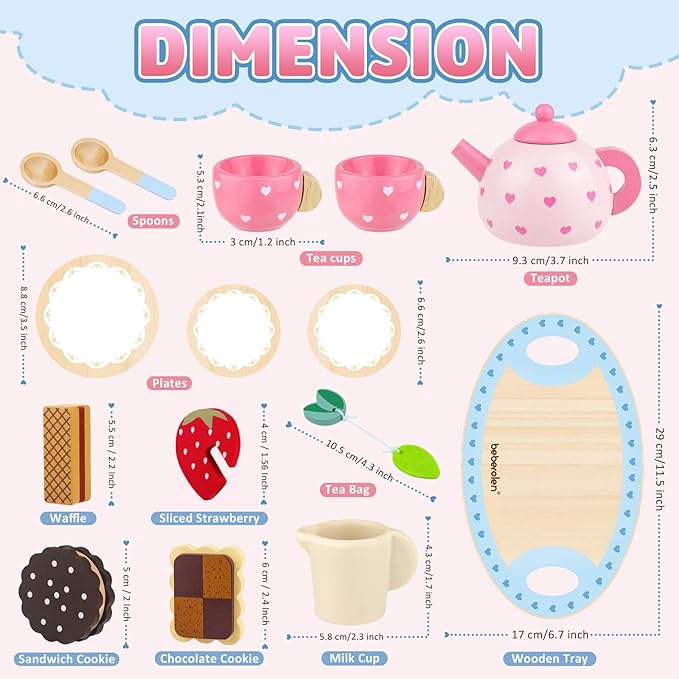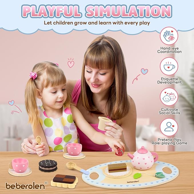 - Ideal Gift & Screen-Free: Looking for the gift for 2-4 year old girls? Look no further! The Beberolen wooden tea set for girls is an ideal present for little ones who love kitchen playsets and wooden toys. It provides a wonderful screen-free play option. Suitable for toddlers, preschoolers, boys, girls, and kids above 3 years old