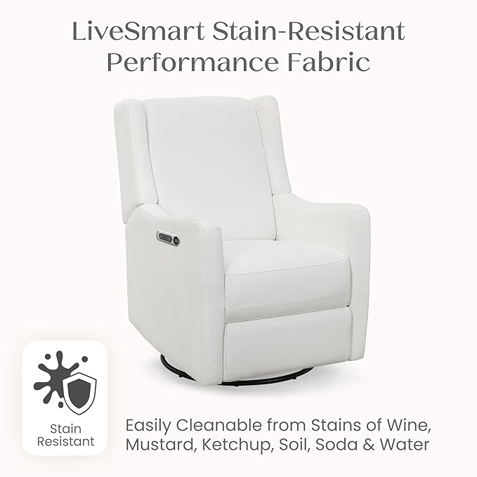 Delta Children Mercer Electronic Power Recliner and Swivel Glider with USB and Type-C Ports in LiveSmart Performance Fabric - Water Repellent & Stain Resistant, Pearl