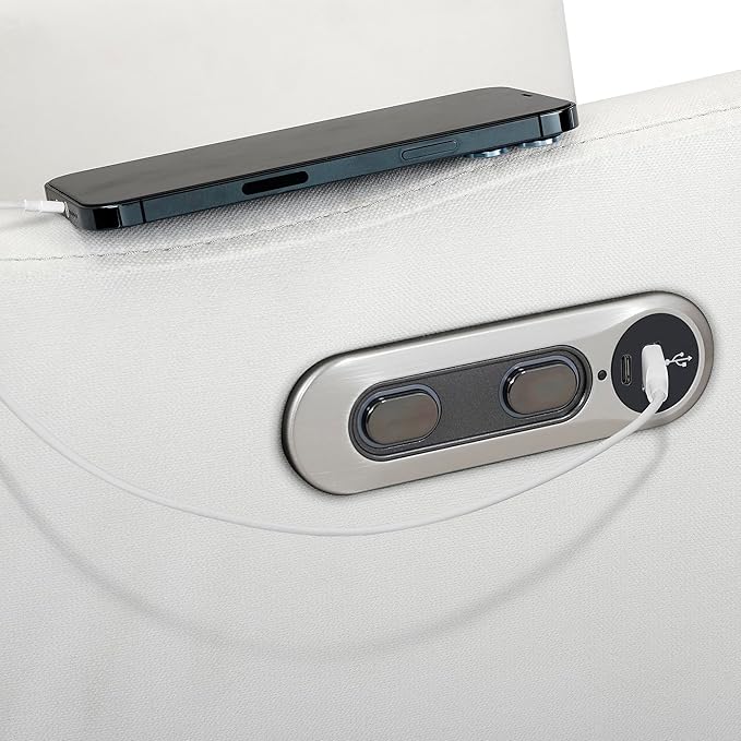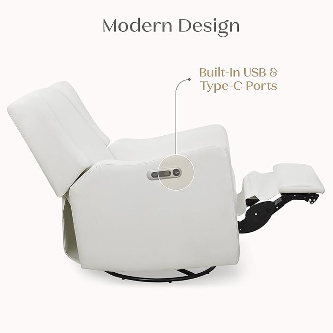 - POWER RECLINER AND GLIDER: Electronically reclines at the push of a button to any position you find most comfortable | Swivels 240-degrees, glides back and forth | Built-in USB and Type-C ports keeps your devices charged | Available in Dark Grey and Pearl