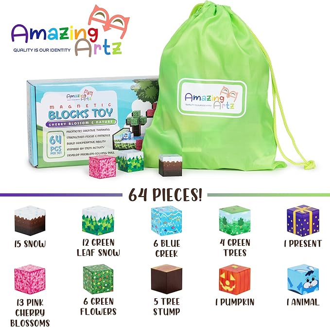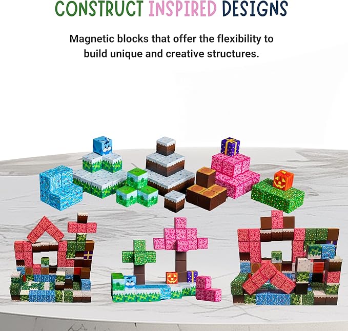 • [Safe, Durable, and Eco-Friendly] Made with non-toxic, eco-friendly materials and sealed edges, these magnetic blocks are safe for kids and built to last. The 64-piece Minecraft set offers endless opportunities for creating simple and intricate designs, ensuring hours of fun.Each magnetic blocks minecraft features Multicolor, eye-catching colors that engage and excite young builders.
