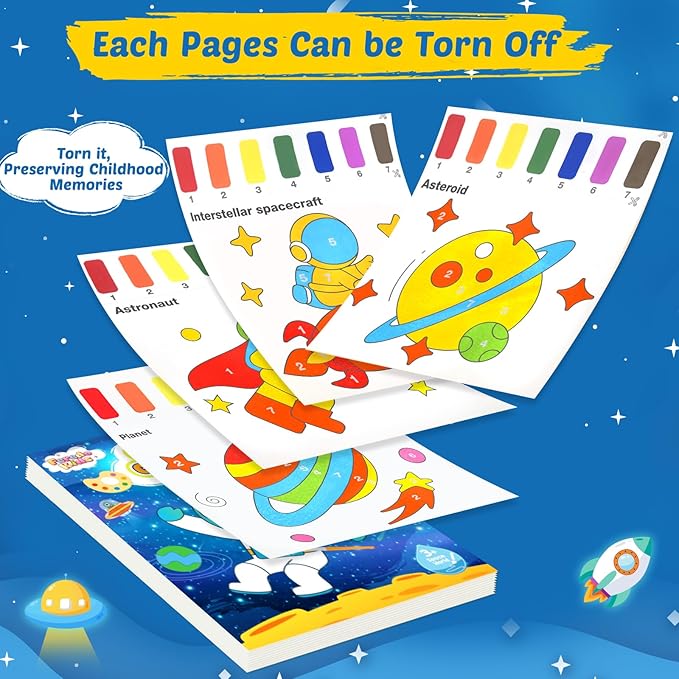 - Easy to Use - Watercolor painting book Simply wet the included paintbrush, moisten the paint palette included on each sheet and start painting. Each sheet has a different scene, kids can paint by numbers and paint on the individual pages.