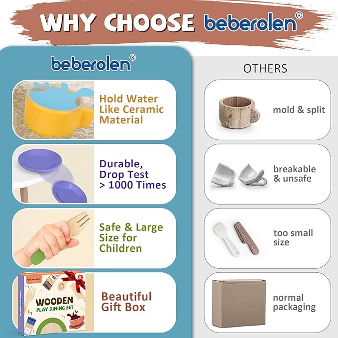 - Great Gift for Boys and Girls: With its attractive packaging, the Beberolen wooden play set makes an ideal gift for boys and girls toddlers 3-5 who love kitchen playsets and wooden toys