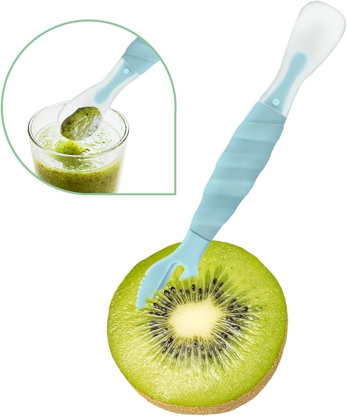 Double Head Baby Silicone Food Spoon ((Aqua Blue)), Baby Fruit Scraping Mud Spoon, Feeding Spoons Training Spoon for Infants, baby led weaning supplies (Aqua Blue)
