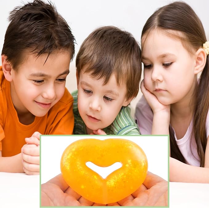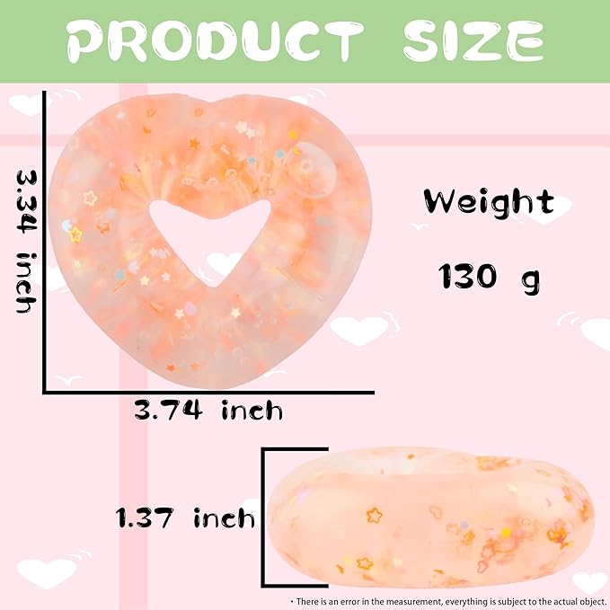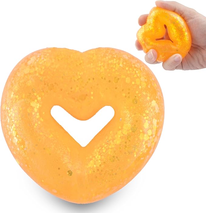 Wearable Squishy Stress Relief Toys, Glitter Heart Stress Relief Toy,Crystal Glitter Bracelet Soft Sensory Fidget Toys,Kids Party Favors,Classroom Rewards,Goody Bag Stuffer (Orange)