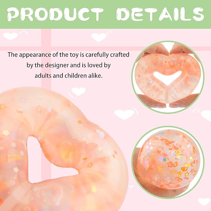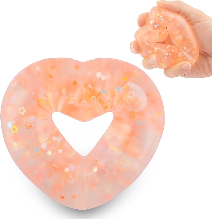 Wearable Squishy Stress Relief Toy, Glitter Heart Stress Relief Toy,Crystal Glitter Bracelet Soft Sensory Fidget Toys,Kids Party Favors,Classroom Rewards,Goody Bag Stuffer (Pink)