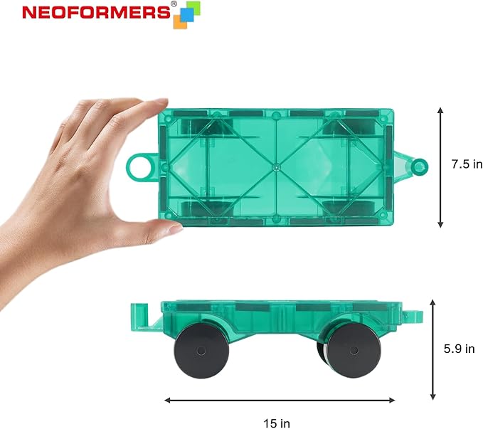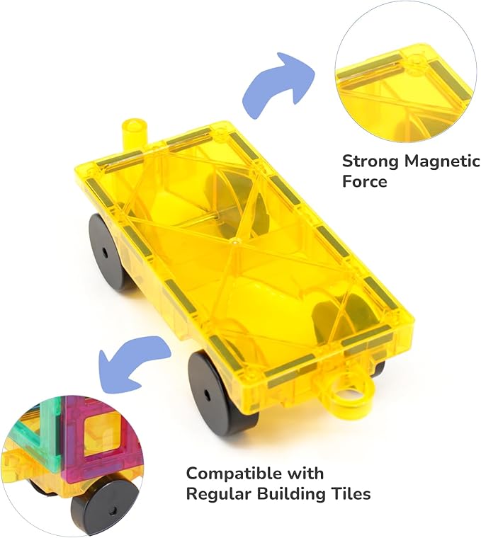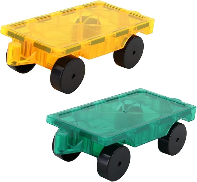 Magnetic Tiles Cars Construction Set - 2 PCS Green & Yellow Magnetic Tiles Magnet Truck Sensory Toys, Educational Magnetic Cars Set Magnet Building Blocks Toddler Toys for 3 4 5 6+ Year Old
