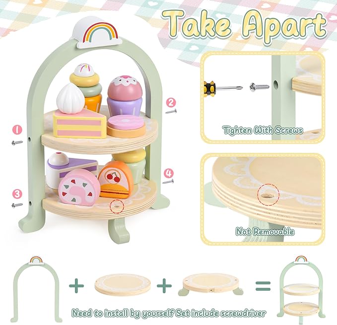 - MADE OF SOLID WOOD: WWe carefully use high-quality wood, the edges of the smooth and rounded treatment, care for children's soft palm, natural wood texture, bring children the most real, the most warm touch experience. And we have designed a dessert rack, children can use their imagination to design freely. In addition, our products are in a fresh and clean Macron color scheme, which can also be used as decorative items in the home when not in use