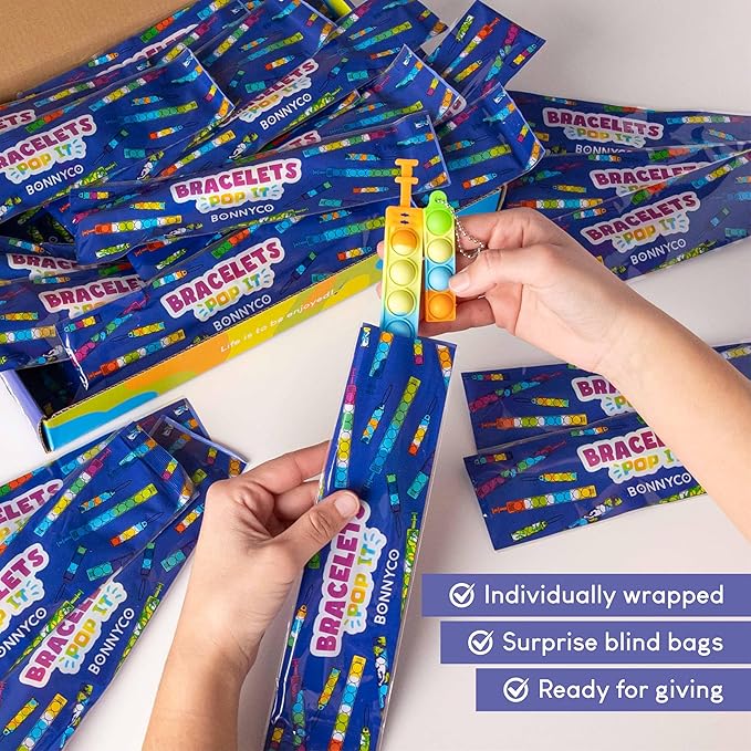 Pop It Bracelets and Keychains Kids Party Favors Pack 30 - BONNYCO | Goodie Bags Stuffers For Kids Fidget Toys Bulk, Birthday Party Favors for Kids Pinata Stuffers, Goody Bag Stuffers for Kids Pop Its