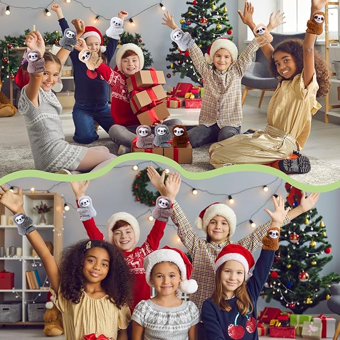 - Sloth Plush Sleepover Party Favor Supplies for Girls Kids Birthday: a pack of 8 plush sloth hug animal slap bracelets of different breeds, cute and exquisite, enough for boys and girls to wear and share with classmates, or to add some variety to their own bracelet collection; This charming set is suitable for various first day of school parties, offering both fun and variety