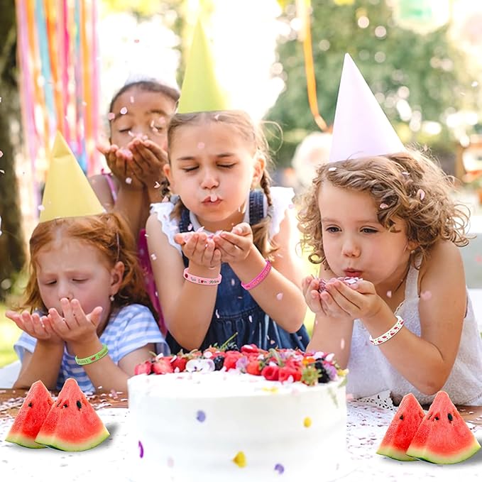 - Multiple Application: These watermelon party decorations are not only suitable for party activities, but can also be used for picnics, camping, beach vacations, outdoor music festivals, summer sports competitions, etc. These watermelon silicone wristbands can add a sense of vitality and fashion to you