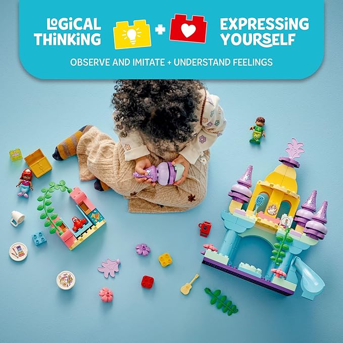 - Buildable toy castle home of Ariel, the Little Mermaid – Toddlers enjoy undersea construction fun with the LEGO DUPLO Disney Ariel’s Magical Underwater Palace