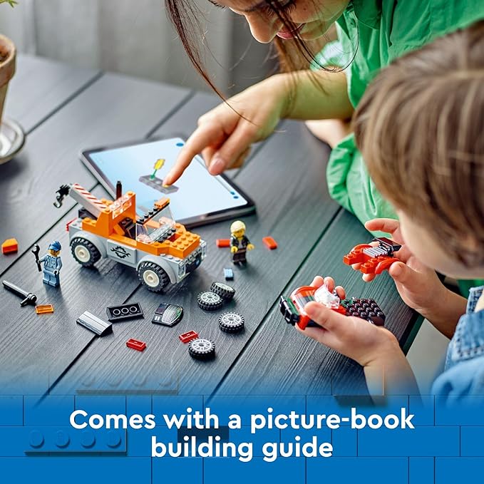- Tow truck toy playset for ages 4 and up – Join your little hero for fun adventures with the LEGO City Tow Truck and Sports Car Repair playset for imaginative storytelling